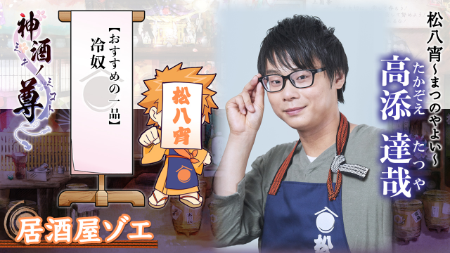 | 初めまして!松宵庵を盛り上げにきたゾエこと高添達哉(たかぞえ たつや)です。寂しがり屋なので視聴者の皆さんと一緒にワイワイ楽しくおしゃべりしながら、日本酒の魅力を伝えていきたいと思います!テンションが高くて少々騒がしいかもしれませんが、これからよろしくお願いしまーす!! | ||