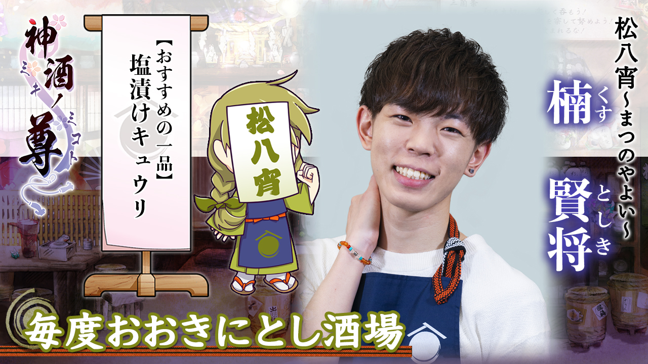 はじめまして!皆さん日本酒飲んでますか?岩手県出身の今ひろゆき(こん ひろゆき)です! 松宵庵スタッフの『松八宵』として参加させて頂くことになりました。 まだまだ日本酒はビギナーですが、視聴者の皆さんと一緒に神酒ノ尊を通して、日本酒の魅力や奥深さを知っていけたらと思います! これからみきみこの世界をどんどん盛り上げていきますので宜しくお願い致します! |
